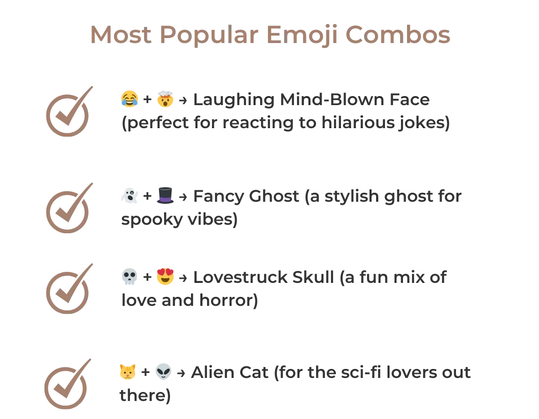 - 😂 + 🤯 → Laughing Mind-Blown Face (perfect for reacting to hilarious jokes)